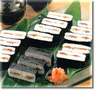 7)枠からはずしラップに包んで、食べる直前に海苔を巻きます。