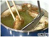 揚げ時間は1分ちょっとかかります。いわしのほかあじやさばの青背魚でも合います。