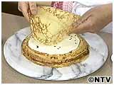 4マンゴー入りクリームをのばします。以上を同様にして交互に重ねます。