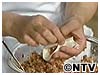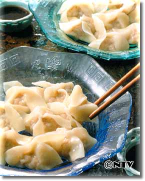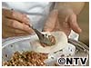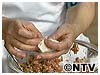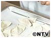 2)水で皮の周囲を濡らしてから、真ん中をつまみます。