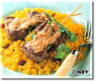 ココナッツカレーピラフ&牛肉の串焼き