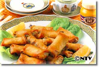 春巻きの皮は水気を嫌うので、具を包んだらペーパーの上にのせておきます。皮が湿ってしまうと皮が破れ易くなります。具をほうれん草の代わりに春菊にしたりささ身に替わって帆立の缶詰でもよい。