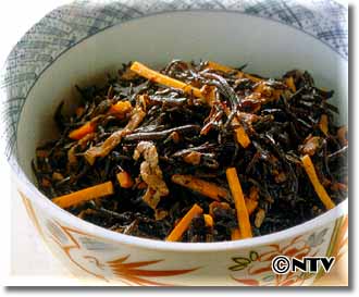 ●混ぜごはん 温かいごはんにひじきの煮ものを混ぜるだけ。ごはん2膳分にひじきの煮もの3/4カップぐらいが適量。 ●卵焼き 卵3個にひじきの煮もの約大さじ3を混ぜ、塩、砂糖各少々で調味し、普通の卵焼きの要領で焼く。