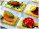 ●トッピングは好みで組み合わせて。ここでは、(1)ソーセージとピクルスとスタッフドオリーブ、(2)サラミとうぐら卵、(3) トマトとピーマン、(4)アーモンドとパセリ、(5)パプリカとスライスアーモンド、(6)カッテージチーズとはちみつ、くるみ(7) プラムとカテージチーズとピスタチオ、の7種。 ●トッピングは身近にあるサラミやソーセージ、ゆで卵やピクルスはちみつやナッツ、プチトマトやピーマンなどお好みの組み合わせで焼きます。