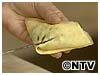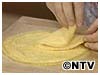 1)薄焼き卵の色のきれいな方を表にし、四つ折りにします。