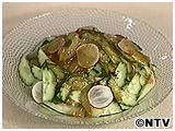 セロリ、ラディッシュ、きゅうりをそれぞれ薄切りにし、テイスティ中華ドレッシングをかけます。