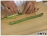 表面を焼きつけるくらいで酒を加え、アスパラをもどします。