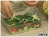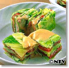 キャベツ、きゅうり、トマト、青じその順に重ねていきます。これを繰り返します。