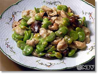 鶏肉の白さと豆の緑が生かされるように焦がさないように注意しましょう。