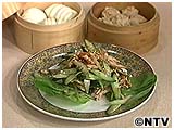 梅醤あえに花巻きとシュウマイを添えるとよい。