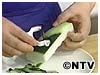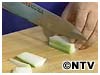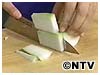 2)5~6cm長さに切ってから、薄切りにします。