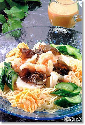 (芝麻醤、しょうゆ、オイスターソース、砂糖各大さじ2、酢大さじ3~4、ごま油大さじ1、スープ1カップ、にんにくのみじん切り少々)
