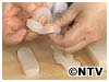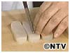1)1cm厚さに切ってから、中央に切り目を入れます。