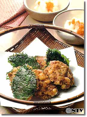 青じそにふる片栗粉はつけすぎないこと(はがれ易くなります)。