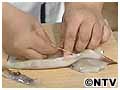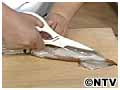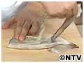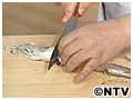 4)くちばしの部分を切り落とし足は吸盤をこそげるように落として食べやすく2~3本に分けます。