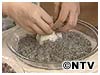 1)ごはんはあついうちに半つぶしにして丸めておきます(大きいもの、小さいもの分けて)。