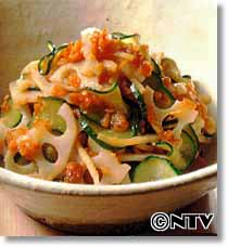 きゅうりとれんこんのもろみあえ