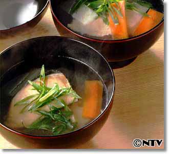 鯛の潮汁にも勝るにも劣らないおいしさです。アクをきれいにとって澄んだ汁に仕上げましょう。必ず味見をして塩加減を確認すること(骨の塩分が抜けていないことがあるので)。