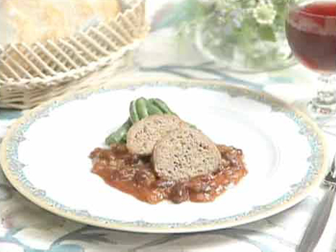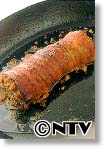 ベーコンを巻き、バターをぬって焼くことで、中のジュースが逃げない。焼き揚げたら、10分ほど休ませて肉汁を落ちつかせてから切る。