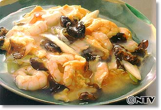 えびのピンク色や卵の黄色を見せたいのであんは透明に仕上げましょう。