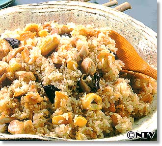 お米に芯が残らずにふっくら炊くコツは米は洗ってザルに上げて30分おき、その間に具の準備をして、炊飯器に入れて水加減をしたらすぐにスイッチを入れて炊きます。