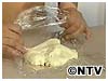2)次に冷水を加えて、ひとまとまりになるまでまわします。