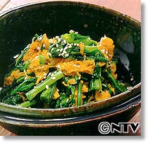 青菜の菊花あえの菊の花びらの中芯部分は苦いので除きます。
