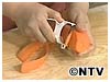 1)大根に箸で穴をあけてから、種を除いた赤唐辛子をつめます。