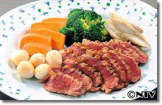 鴨の焼き方のポイントは皮側をまず4~5分かけて焼きこんがり色をつけ、返してさらに4~5分焼くこと。この時、出た脂はしっかり取り出します(この脂はうま味がでているのでゆでたじゃが芋などにつけて食べると美味しい)。