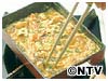 卵焼きの縁のほうから手早くかき混ぜてやわらかい炒り卵にする。