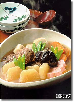 お正月や早春の料理に使われる生麩のひとつ。生麩は小麦粉のグルテンにもち粉などを加えて蒸すか、ゆでるかしたもので、もちに似た弾力のある歯ごたえが好まれる。