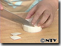 (1) 皮をむいてから2cm厚さの輪切りにします。