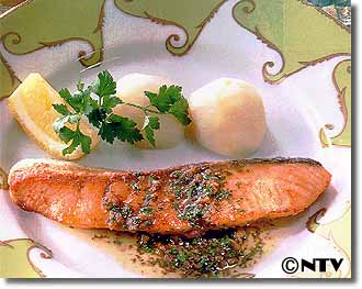 鮭は表になる面から焼き始め、ふちが白くなってきたら返して中まで火を通します。焼き上がったらフライパンの油をきれいに拭いてからソースを作ります。(ソースが魚臭くならないように)