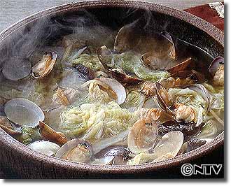 あさりの塩分を考えて塩は白菜が煮えてから味をみて加えたほうがよい。