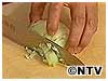 2) 縦に3~5ミリ幅に切り込みを入れる。
