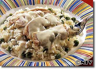 鶏肉のクリームソースかけ 青豆ごはん添え