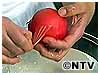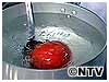 トマトの皮に十字に切り目を入れて熱湯に5~10秒つけます。