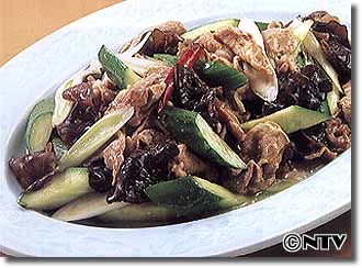 炒めものは炒める前の材料の下準備が大切です。木くらげはぬるま湯につけてもどし、洗っておきます。きゅうりや木くらげはさっと熱湯に通しておくと、炒めるときに味がしみ易く、水っぽくならないので、面倒がらずにやりましょう。