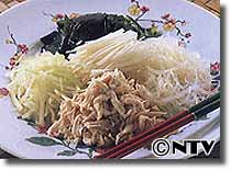 たれ(酢大さじ3+1/2、スープ大さじ2、砂糖大さじ1、塩小さじ1/2、練り辛子、ごま油各大さじ1/2)