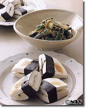 青じそや梅肉、わさびの代わりにハムやマヨネーズをはさむとお子さまむきの一品になります。