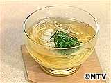 材料: そうめん(2束)、みょうが(2個)、青じそ(10枚) だし汁(3+1/4カップ)、塩(小さじ1) しょうゆ(小さじ1)、みりん(小さじ2) 作り方 1)みょうがと青じそは細切りにしておきます。 2)そうめんはゆでて冷水にとり、もみ洗いして水気をよくきってからお椀にいれておきます。 3)だし汁に調味料を入れてひと煮し冷やしておきます。 4)2に3の汁をはり1の具をのせます。