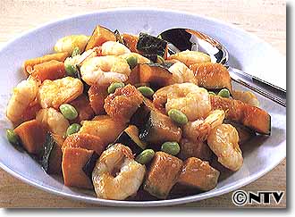 えびとかぼちゃの塩炒め