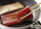まぐろは両面をさっと焼いて、八分通り火を通す。焼きすぎると身がぱさついておいしくないので注意を。