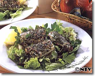 (塩小さじ2/3、こしょう少々、レモン汁大さじ1、タイム、ローズマリー、パセリのみじん切りを合わせて大さじ2~3、オリーブ油大さじ2)