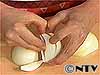玉ねぎは全部同じ大きさに切り揃えます。 半分に切ったら中側を抜いて分けて切るとよい。