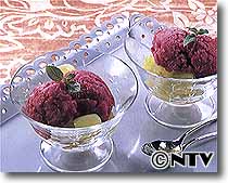 デザートのシャーベット、お酒が弱い方にはちょっと酔ってしまうかも…!? お子さまにはグレープジュースで作るとよい。