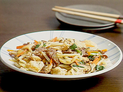 炒め方のポイントは 豆腐は焦げ目がつくまでポロポロに炒めること、うどんを加えたら、ほぐさないで蒸し焼きにすることです。 無理に混ぜるとめんがちぎれてしまうので、まず炒めた具の上にのせて、蓋をして蒸します。水分がほぼなくなってめんがほぐれたら、仕上げにはいります。