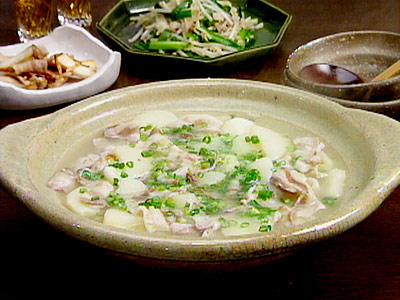 具を食べたあとの残りのスープは塩少々で味をととのえ、きしめん、うどん、ラーメンなど好みのゆでためんを入れて食べるとよい。またごはんを加えておじやにしてもおいしく、どちらも万能ねぎと白こしょうを薬味にして食べる。