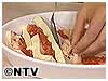 グラタン皿にソースをしき、豆腐を斜めにたてるようにおいて、ツナ、ソースと重ねていきます。