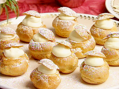 アレンジしだいで表情の違うお菓子が生まれる。 写真はプチシュー4個を盛り、チョコレートソースを かけ、刻んだピスタチオをふったもの。